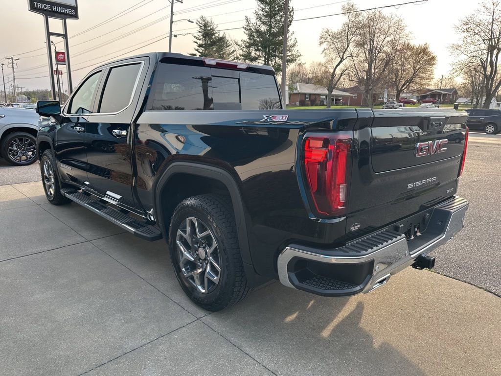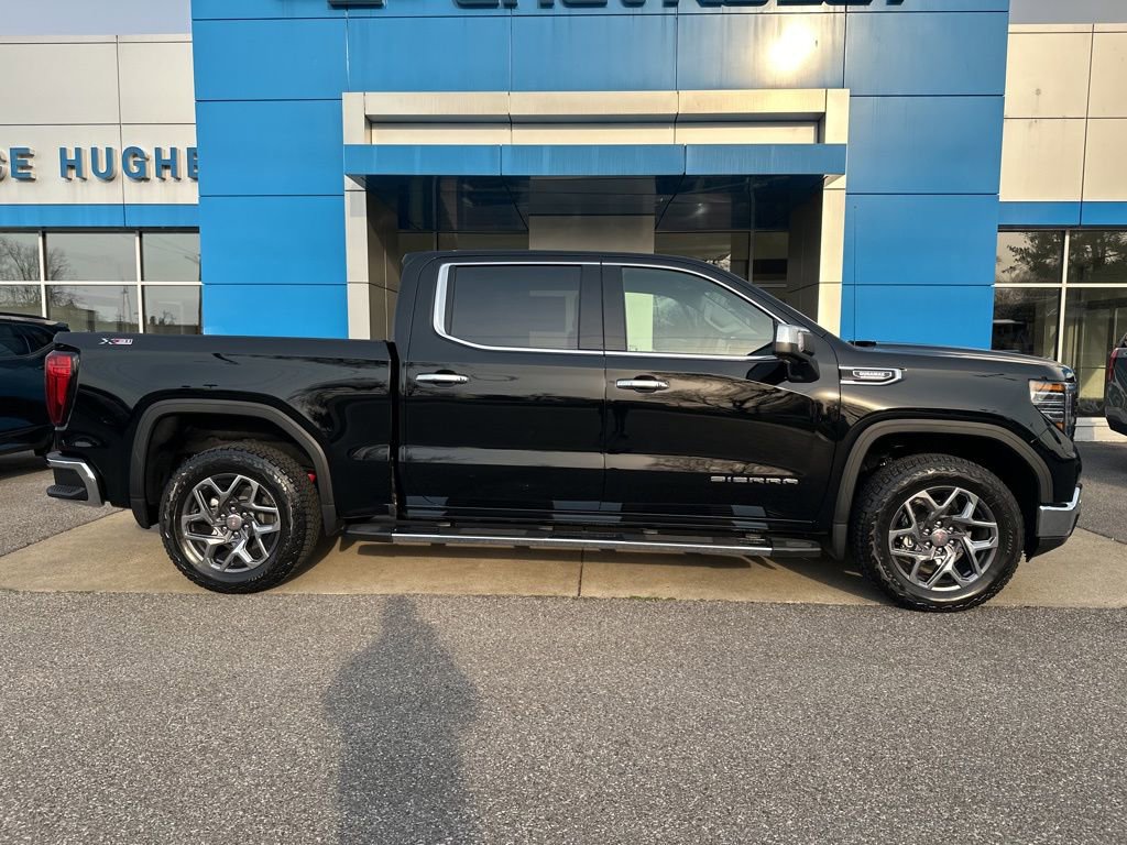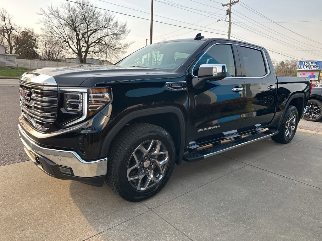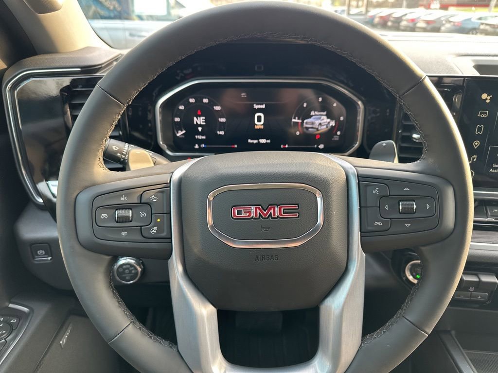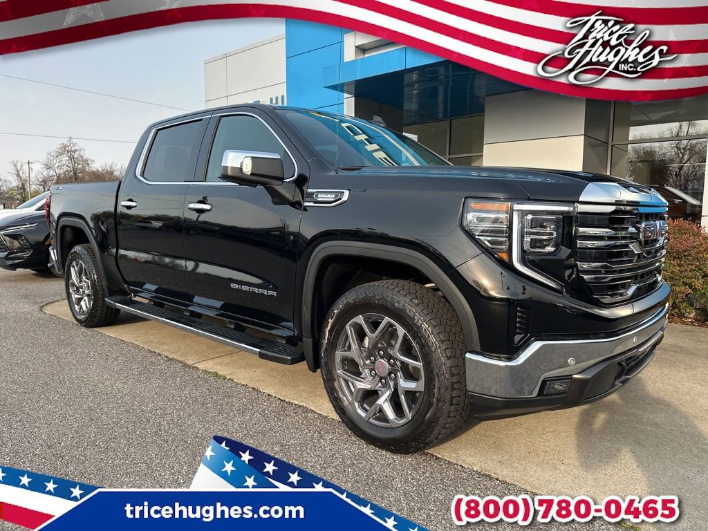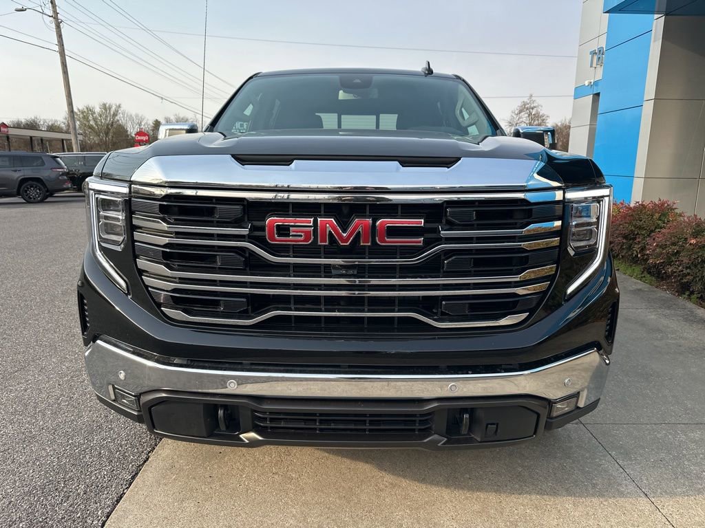 Sierra 1500 SLT, 4D Crew Cab, 3.0L I6, 10-Speed Automatic, 4WD, Onyx Black, 120-Volt Bed Mounted Power Outlet, 120-Volt Interior Power Outlet, 170 Amp Alternator, 2 Charge/Data USB Ports, 2 Type-C Charge-Only Rear USB Ports, 3.23 Rear Axle Ratio, 4-Wheel Disc Brakes, 6 Speakers, 6-Speaker Audio System Feature, ABS brakes, Air Conditioning, Alloy wheels, AM/FM radio: SiriusXM with 360L, Apple CarPlay/Android Auto, Auto High-beam Headlights, Auto-dimming door mirrors, Auto-dimming Rear-View mirror, Auto-Locking Rear Differential, Automatic Emergency Braking, Automatic temperature control, Auxiliary External Transmission Oil Cooler, Brake assist, Buckle to Drive, Bumpers: chrome, Color-Keyed Carpeting Floor Covering, Compass, Deep-Tinted Glass, Delay-off headlights, Driver door bin, Driver Memory, Driver vanity mirror, Dual front impact airbags, Dual front side impact airbags, Electric Rear-Window Defogger, Electronic Stability Control, Emergency communication system: OnStar, Following Distance Indicator, Forward Collision Alert, Front 40/20/40 Split-Bench Seat, Front anti-roll bar, Front Center Armrest w/Storage, Front dual zone A/C, Front fog lights, Front Frame-Mounted Black Recovery Hooks, Front Pedestrian Braking, Front Rain-Sensing Wipers, Front reading lights, Front wheel independent suspension, Fully automatic headlights, HD Rear Vision Camera, Heated door mirrors, Heated front seats, Heated steering wheel, Hitch Guidance, Illuminated entry, Integrated Trailer Brake Controller, LED Cargo Area Lighting, Low tire pressure warning, Memory seat, Navigation System, Occupant sensing airbag, OnStar Services Capable, Outside temperature display, Overhead airbag, Overhead console, Panic alarm, Passenger door bin, Passenger vanity mirror, Perimeter Lighting, Power Door Locks, Power door mirrors, Power driver seat, Power passenger seat, Power steering, Power windows, Push Button Start, Radio data system, Radio: Premium GMC Infotainment Audio System, Rain sensing wipers, Rear reading lights, Rear seat center armrest, Rear step bumper, Rear Wheelhouse Liners, Rear window defroster, Remote keyless entry, Remote Vehicle Starter System, Security system, Speed control, Speed-sensing steering, Split folding rear seat, Standard Suspension Package, Steering Wheel Audio Controls, Steering wheel mounted audio controls, Tachometer, Telescoping steering wheel, Tilt steering wheel, Traction control, Trailering Package, Trip computer, Variably intermittent wipers, Voltmeter, Wheels: 18 x 8.5 6-Spoke Machined Aluminum, Wi-Fi Hotspot Capable, Wireless Apple CarPlay/Wireless Android Auto, Sierra 1500 SLT, 4D Crew Cab, 3.0L I6, 10-Speed Automatic, 4WD, Onyx Black.