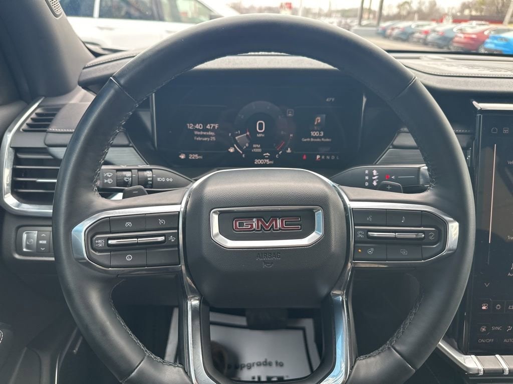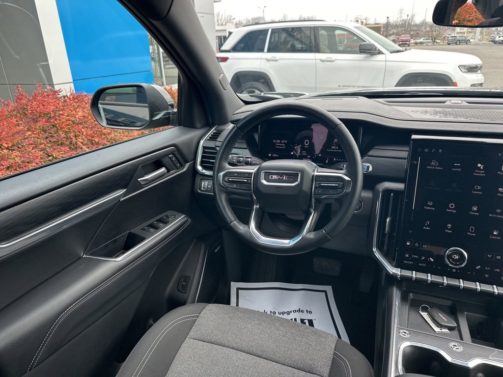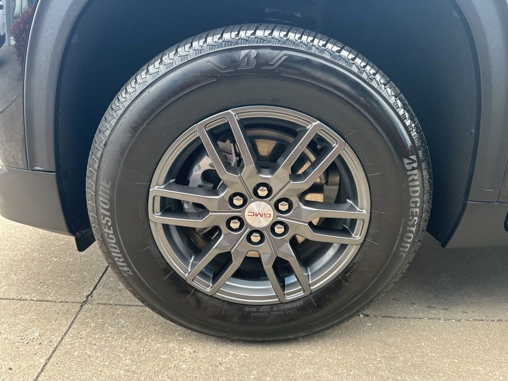 FWD, After Dark Cloth, 12 Speakers, 18 x 7.5 Aluminum Wheels, 2-Way Driver Power Lumbar Seat Adjuster, 3.49 Final Drive Axle Ratio, 3rd row seats: split-bench, 4-Way Manual Front Passenger Seat Adjuster, 4-Wheel Disc Brakes, 8-Passenger Seating (2-3-3 Seating Configuration), 8-Way Power Driver Seat Adjuster, ABS brakes, Air Conditioning, Alloy wheels, AM/FM radio: SiriusXM with 360L, Apple CarPlay/Android Auto, Auto High-beam Headlights, Auto-dimming Rear-View mirror, Automatic temperature control, Black Wheel Lug Nuts, Bodyside moldings, Bose Premium 12-Speaker System with Sub-Woofer, Brake assist, Bumpers: body-color, Cloth Seat Trim, Compass, Delay-off headlights, Driver door bin, Driver vanity mirror, Dual front impact airbags, Dual front side impact airbags, Electronic Stability Control, Emergency communication system: OnStar Services capable, Exterior Parking Camera Rear, Four wheel independent suspension, Front anti-roll bar, Front Bucket Seats, Front Center Armrest, Front dual zone A/C, Front fog lights, Front reading lights, Fully automatic headlights, Heated door mirrors, Heated Driver and Front Passenger Seats, Heated front seats, Heated steering wheel, Illuminated entry, Leather steering wheel, Low tire pressure warning, Navigation System, Occupant sensing airbag, Outside temperature display, Overhead airbag, Overhead console, Panic alarm, Passenger door bin, Passenger vanity mirror, Power door mirrors, Power driver seat, Power Liftgate, Power steering, Power windows, Preferred Equipment Group 4SC, Radio data system, Radio: 15 Diagonal Premium GMC Infotainment System, Rear air conditioning, Rear anti-roll bar, Rear reading lights, Rear seat center armrest, Rear side impact airbag, Rear window defroster, Rear window wiper, Remote keyless entry, Security system, SiriusXM with 360L, Speed control, Speed-sensing steering, Split folding rear seat, Spoiler, Sport steering wheel, Steering wheel mounted audio controls, Tachometer, Telescoping steering wheel, Tilt steering wheel, Traction control, Trip computer, Turn signal indicator mirrors, Variably intermittent wipers, Voltmeter, FWD, After Dark Cloth.